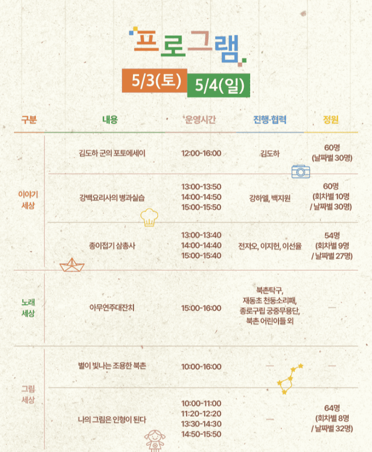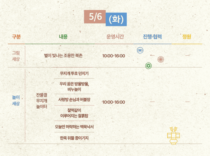 북촌 한옥마을에서 5월 3일, 5월 4일, 5월 6일에